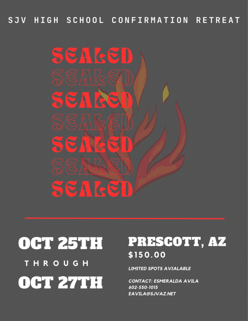 Home We're glad you're here! Your contact information will allow us to provide personalized support and keep you informed about future events. Please enable JavaScript in your browser to complete this form.Please enable JavaScript in your browser to complete this form.Teen's Full Name *FirstLastParent Name *FirstLastParent Phone # *Emergency Phone # *EmailStudent Age *Student Grade *FreshmanSophmoreJuniorSeniorMedications/AllergiesAny medication will be collected by staffMedical insurance and policy numberFor emergency contact purposes, please list the Teen's insurance provider and policy informationParent Release *I have read, understand and consent to the Parent release formI request the St. John Vianney Youth Ministry Program allow my son/daughter to attend High School "Sealed" Retreat on October 25th-October 27th, 2024. By requesting, I understand reasonable precautions will be taken to safeguard the health and well-being of my child and that I will be notified as soon as possible in the event of an emergency. I understand that in the case of an accidental injury I will not hold the Diocese of Phoenix, St. John Vianney Catholic Church, or SJV Youth Ministry accountable. I also understand that if my child needs emergency care. I allow Esmeralda Avila or their designate administer of care, to administer care should that be necessary. In case of sickness or accident, I authorize and consent to any x-ray exam, anesthetic, medical, dental or treatment and hospital care to be rendered to my child under the general care and advice of any physician, dentist or surgeon licensed to practice in the state of Arizona or any other state. I further understand and agree to be responsible for any such medical, dental and/or hospital expenses incurred. Teen Release Form *I have read, understand and consent to the Teen release formPlease accept my application to attend the High School Sent Retreat I understand by requesting to go, I am promising to cooperate with Esmeralda Avila and the Core Team/Staff. I understand the intention of this trip is to help form community and deepen my relationship with God and His Church. I also realize that I may not bring any drugs or alcohol. If I do not follow the above guidelines, I understand that my parents will be called, and I will be sent home at their expense.Registration Fee *Price: $150.00DonationYour support can make a significant difference in a teen's life. Consider sponsoring their attendance at this retreat with a minimal donation of $20 and helping them grow spirituallyMinimum Price: $20.00Square *CardName on CardSubmit